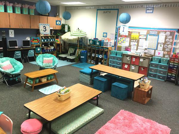 Each student has their own bin where they keep their work (will use desks without storage space)